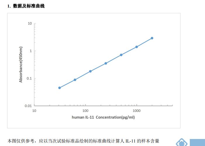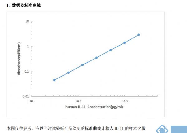 3.以标准品浓度为横坐标,吸光度OD值为纵坐标,用软件绘制标准曲线,样品中IL-11含量可通过对应OD值由标准曲线换算出相应的浓度。