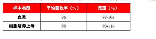在选取的健康人血浆、细胞培养上清中加入 3 个不同浓度水平的人 IL-11,计算回收率。